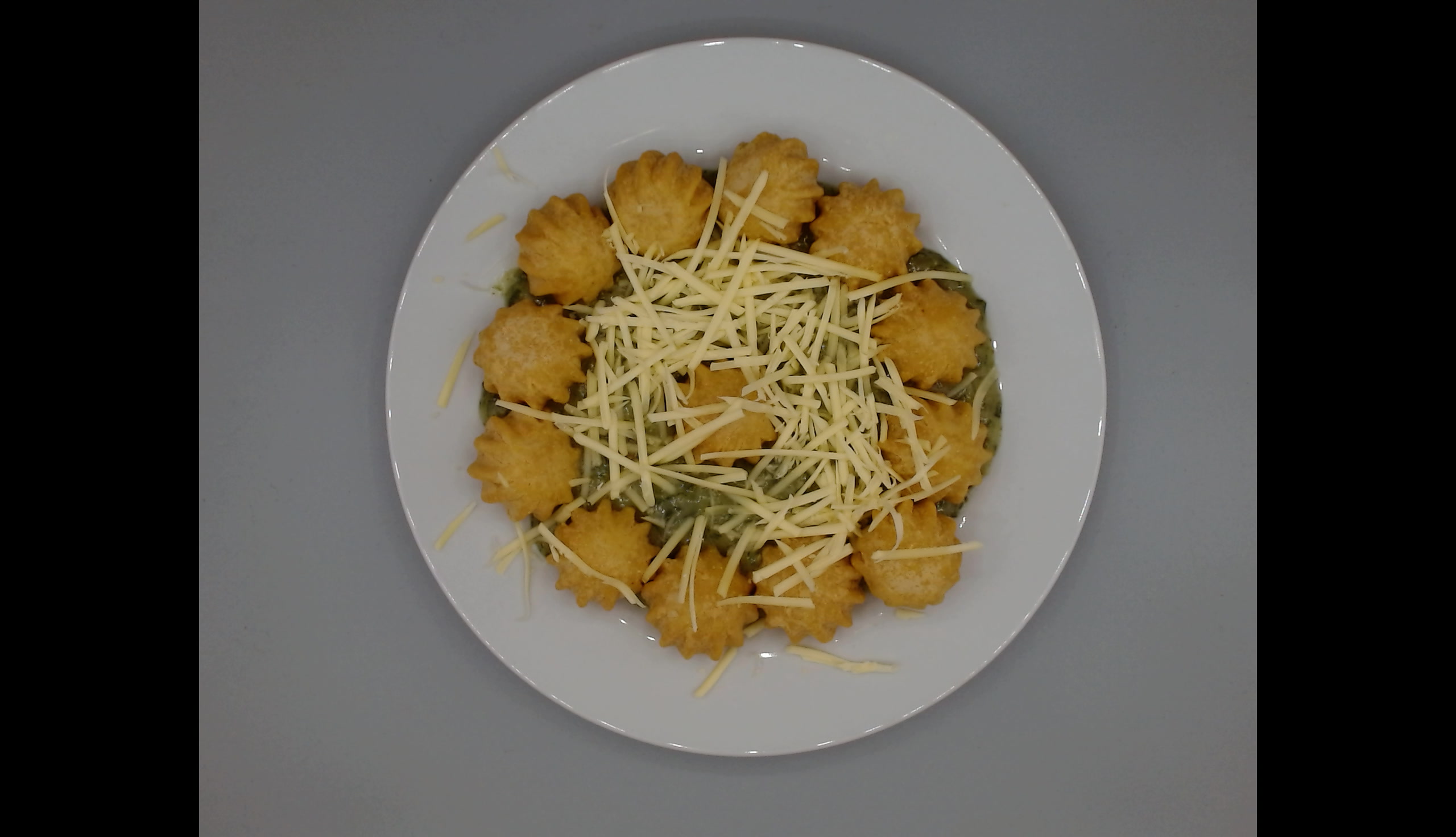 Cizrnové měšce se sýrem a špenátovým přelivem