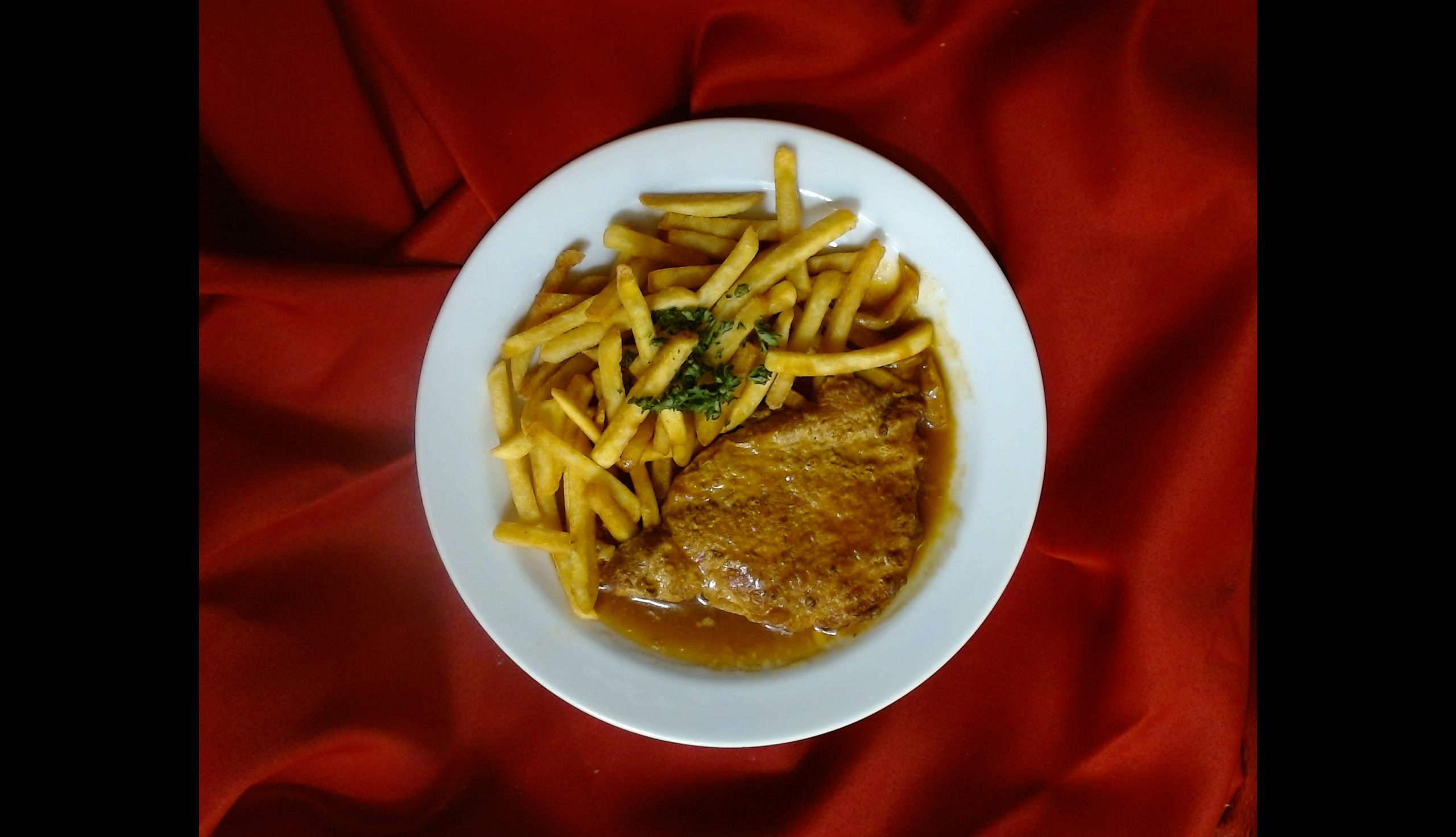 Vepřové žebírko na medu, hranolky