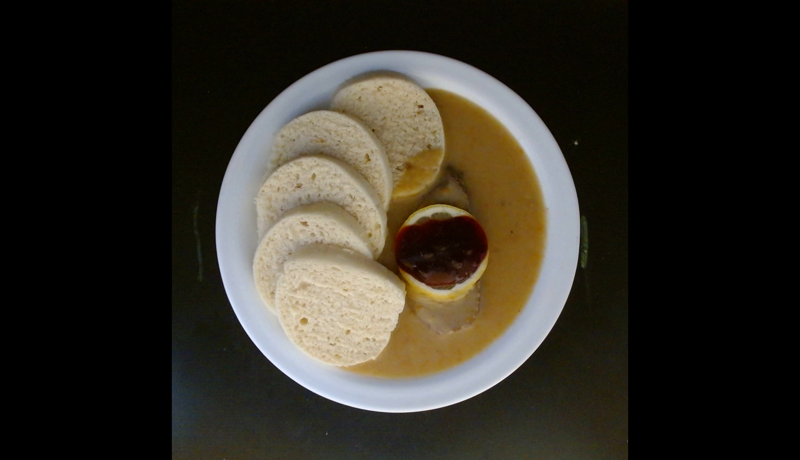 Svíčková hovězí pečeně na smetaně, brusinky, houskové knedlíky