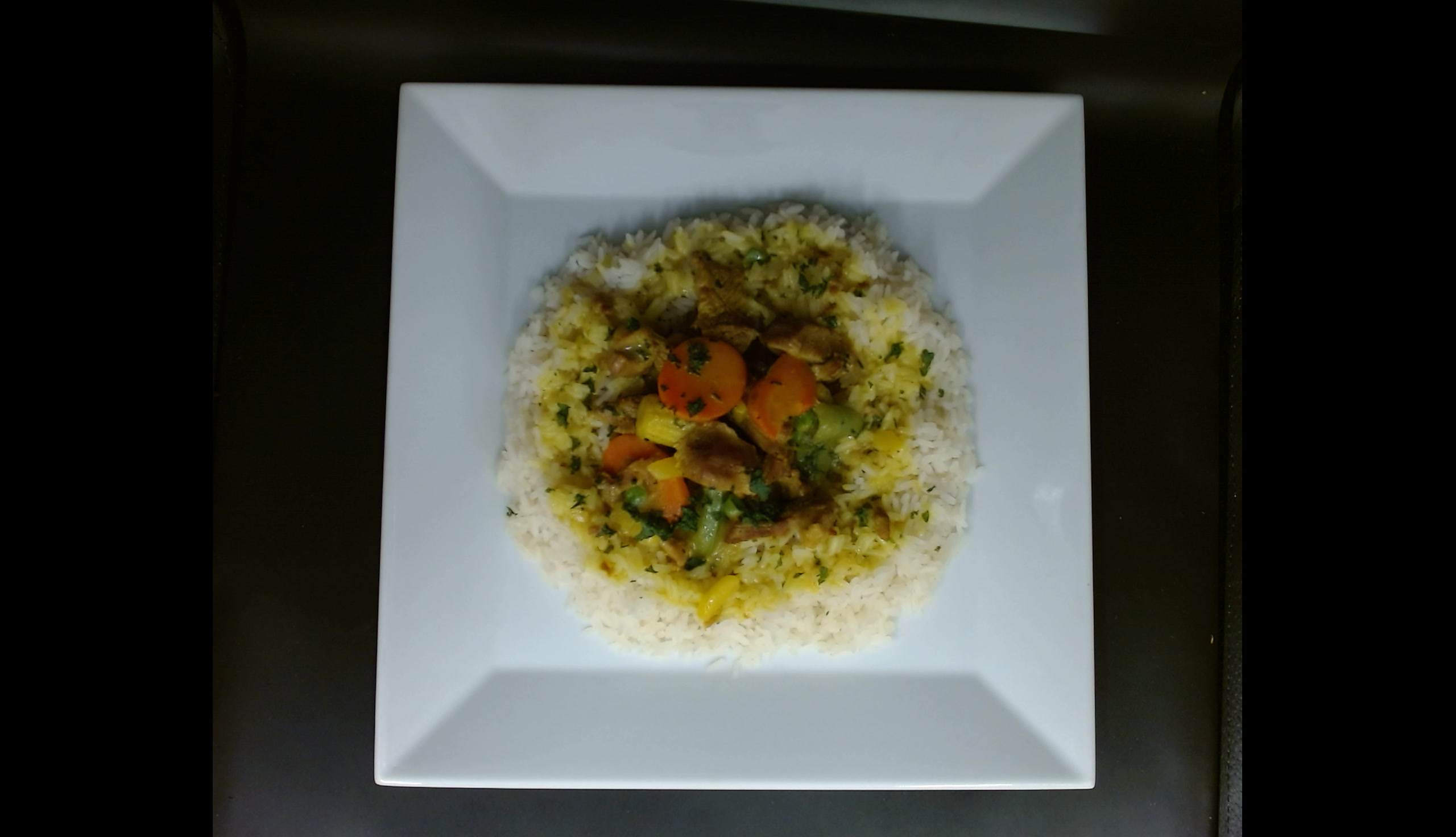 Krůtí nudličky na kari s kokosovým mlékem, dušená rýže