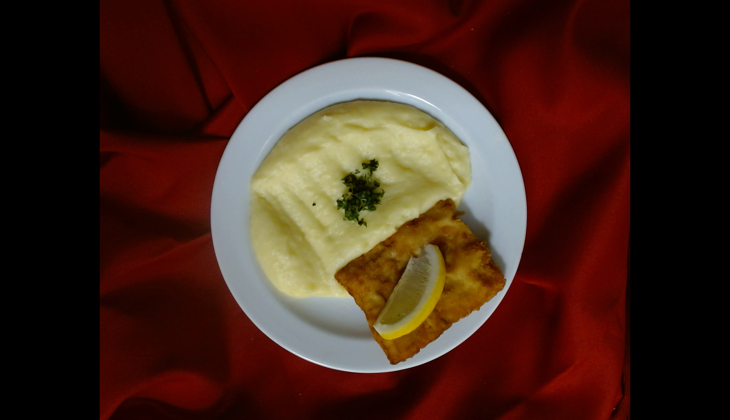 Smažené rybí file, bramborová kaše, citron