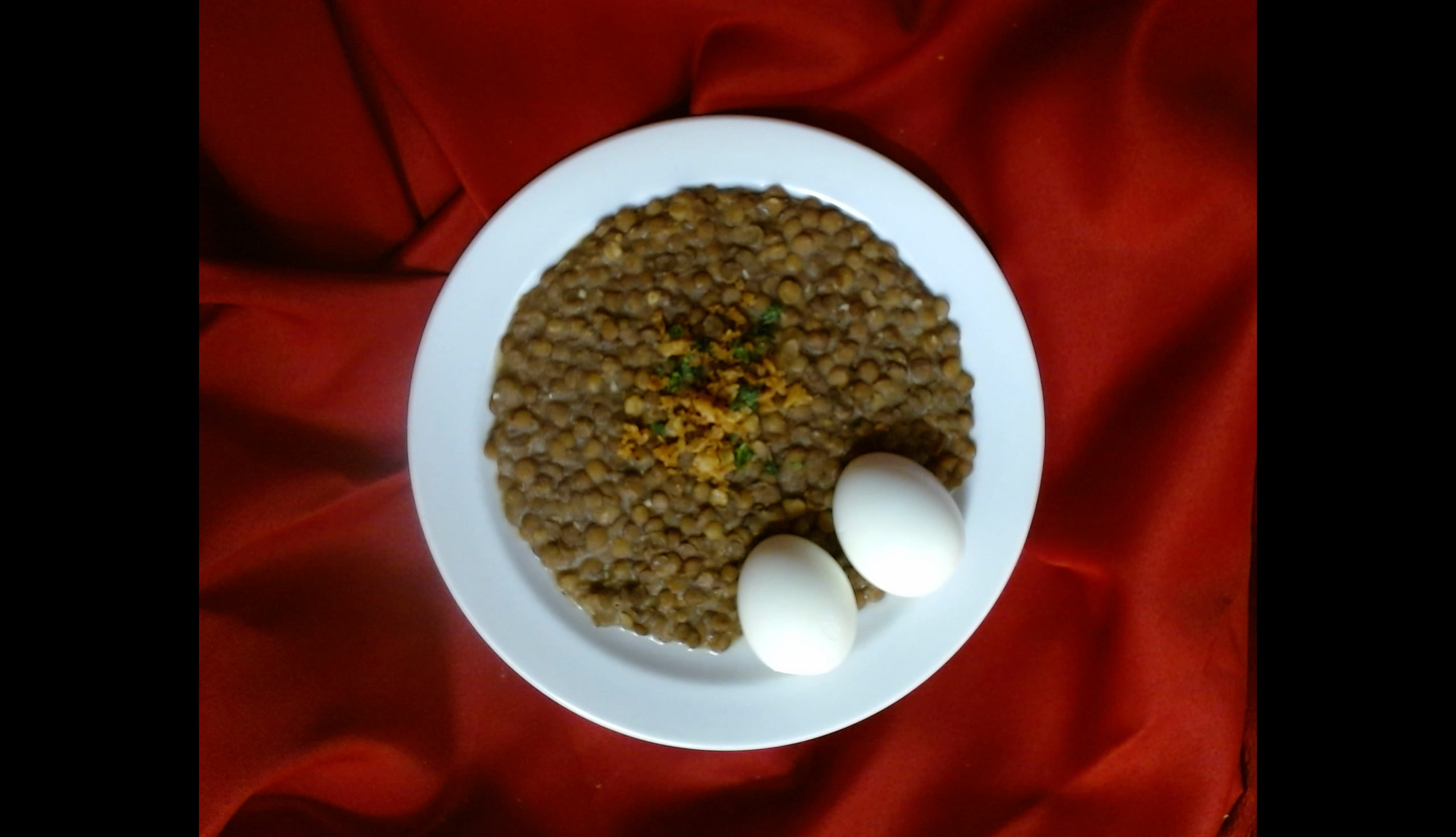 Čočka na kyselo s cibulkou, 2 ks vařené vejce