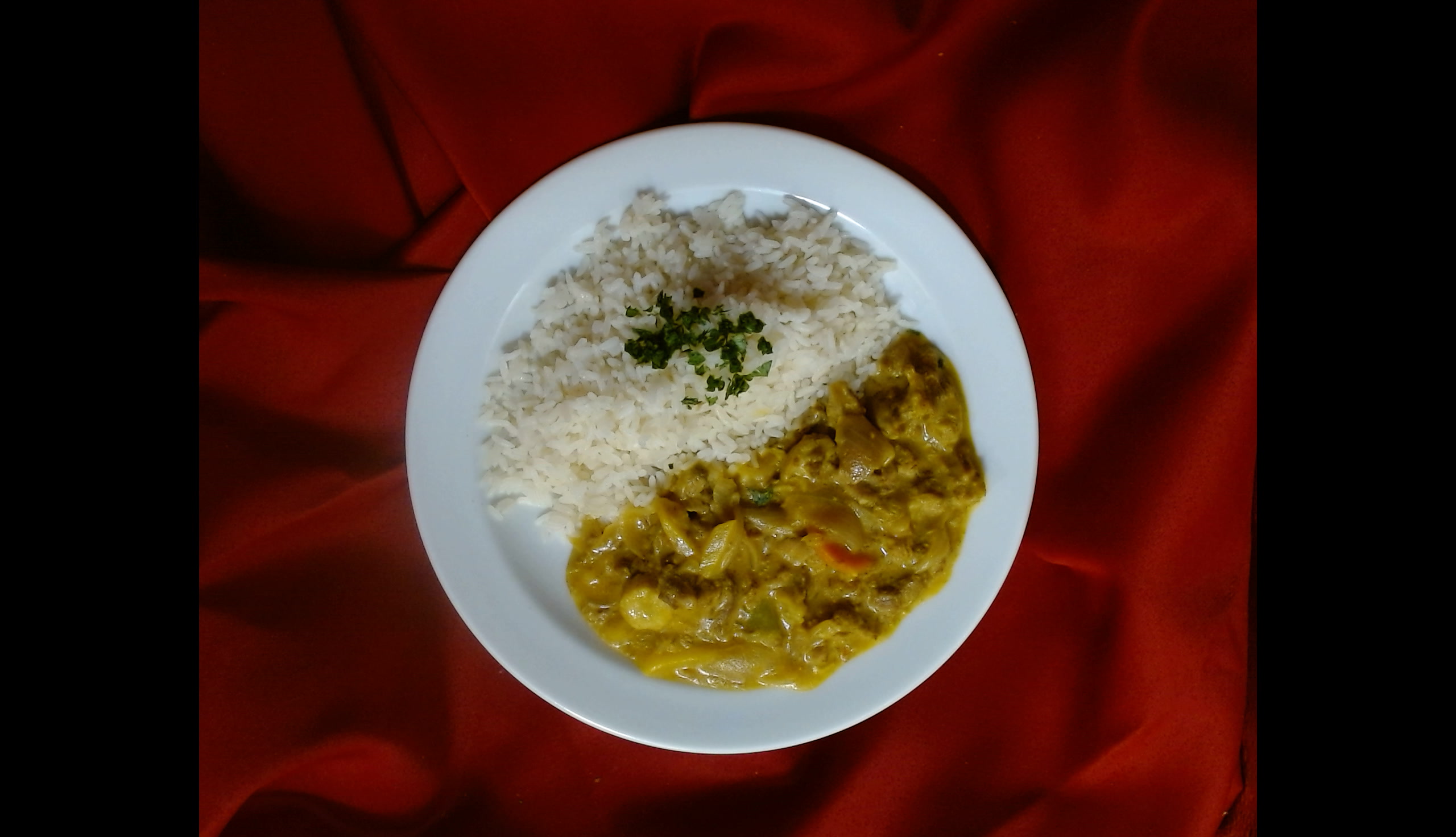 Krůtí nudličky na kari s kokosovým mlékem, dušená rýže