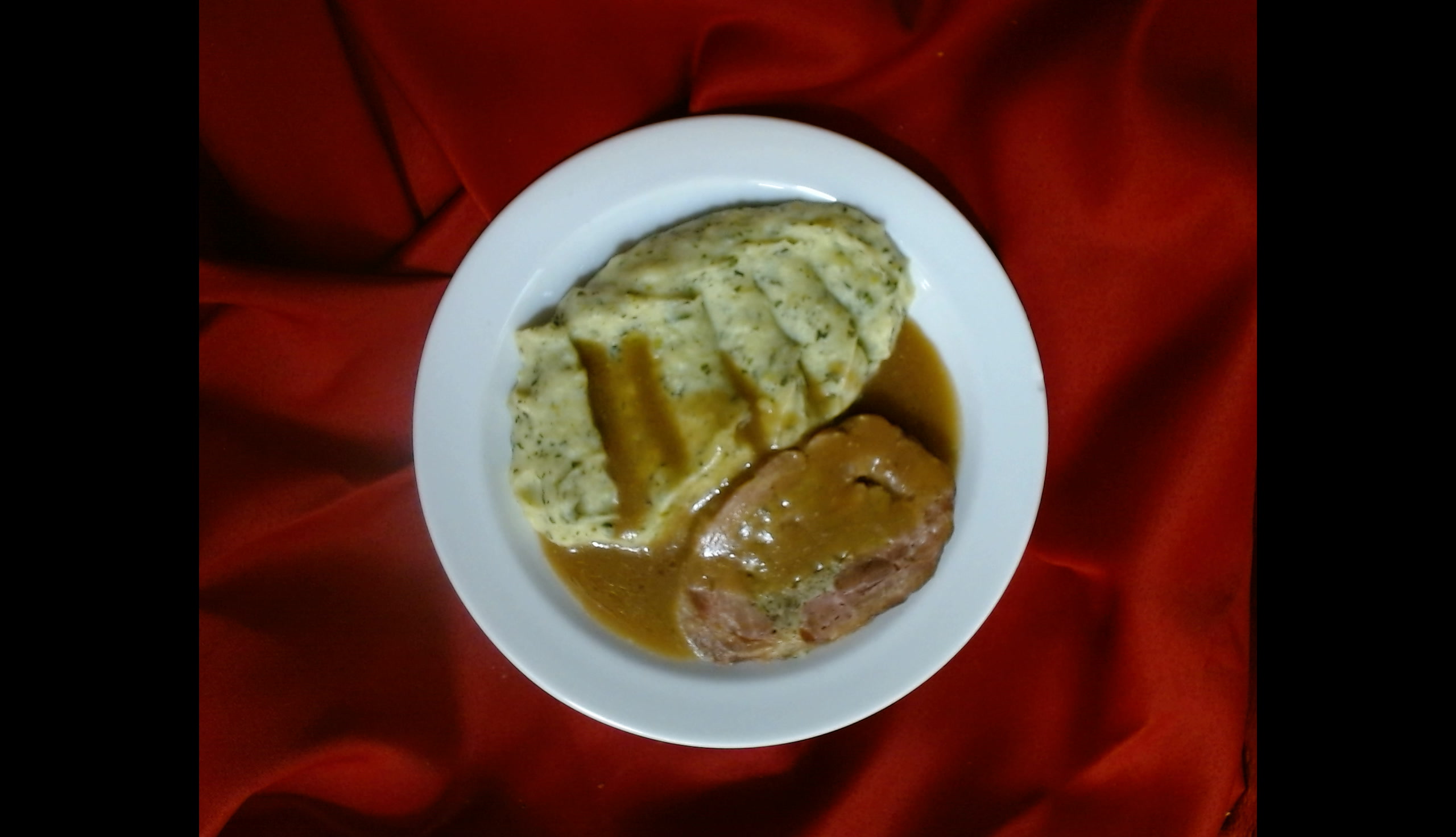 Krůtí roláda, bramborová kaše se špenátem
