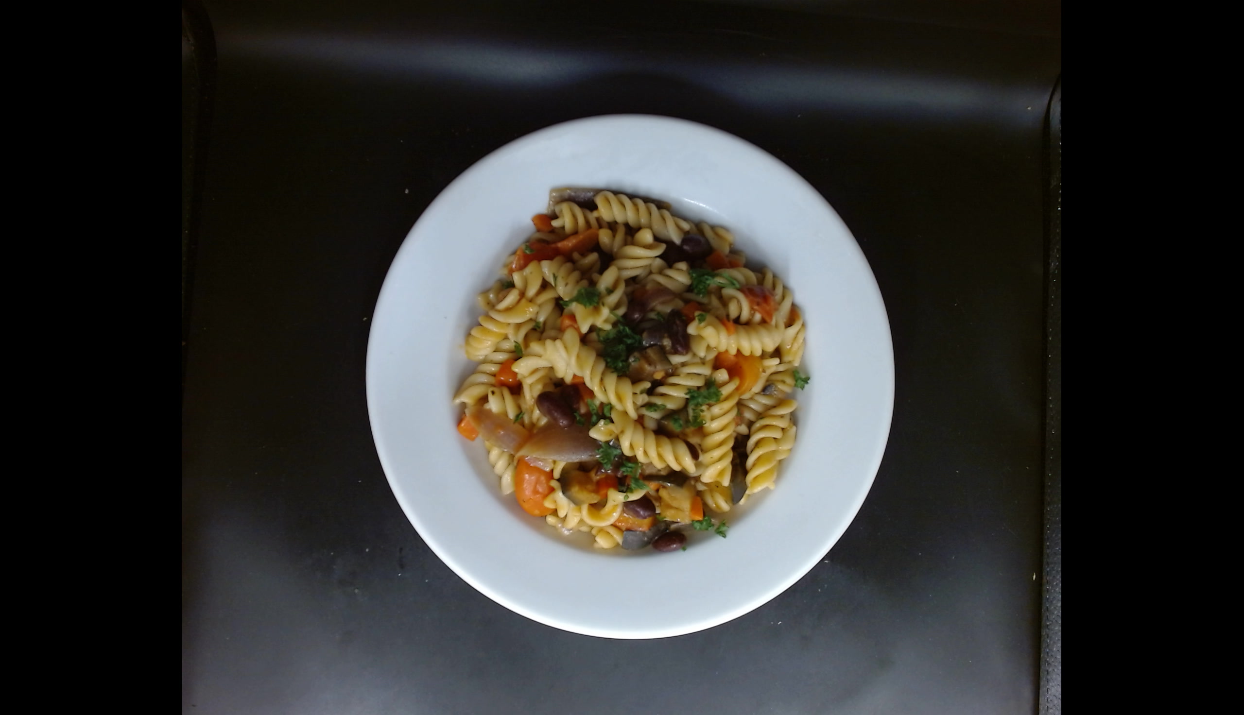 Fussilli s restovanou zeleninou a fazolemi