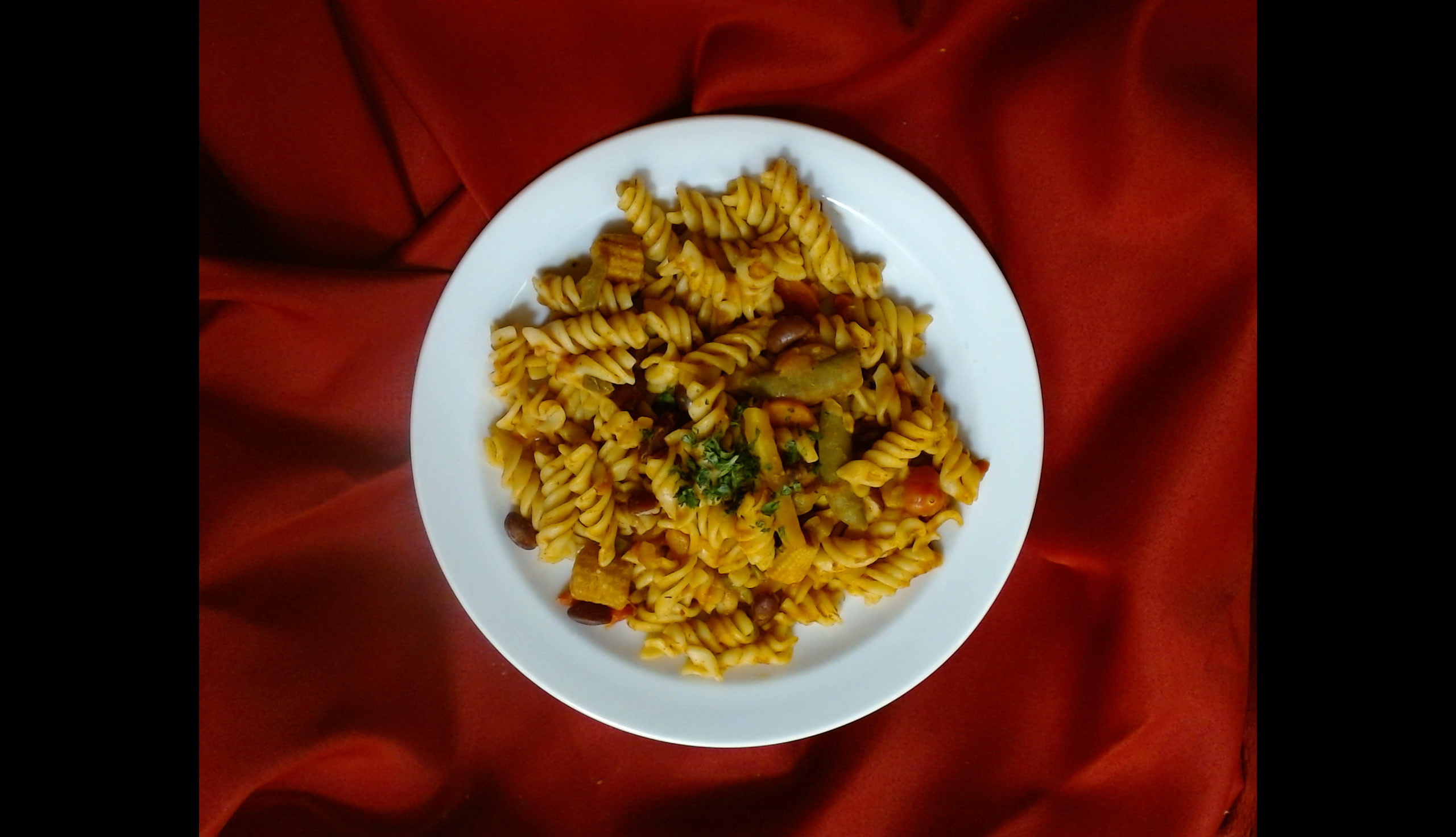 Fussilli s restovanou zeleninou a fazolemi