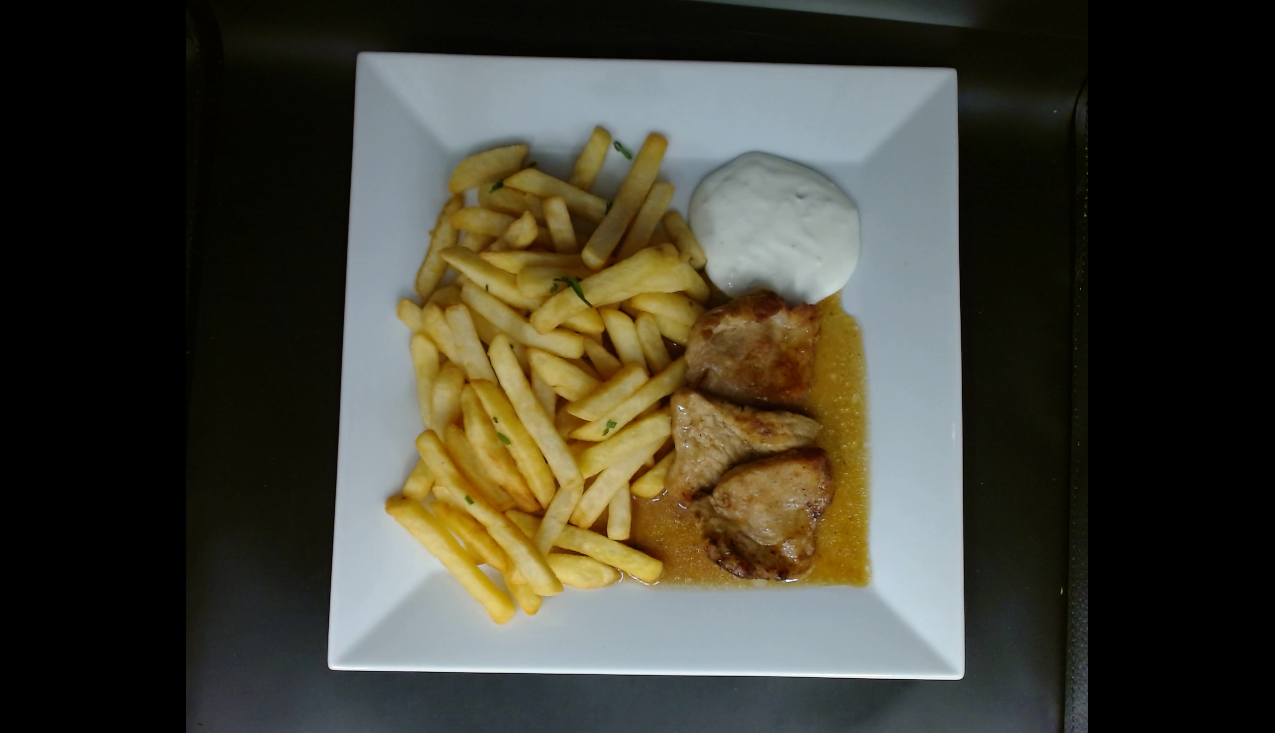 Vepřové medailonky, hranolky, tatarská omáčka