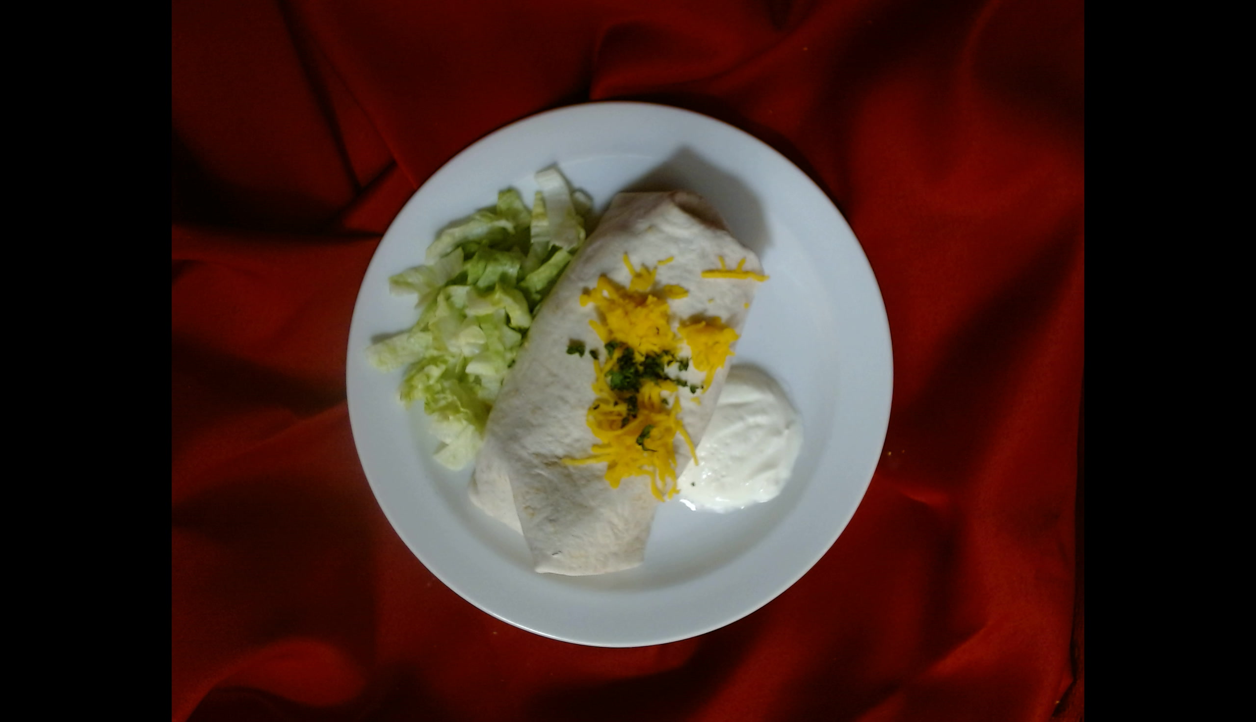 Tortilla s kuřecím masem na ledovém salátu se zakysanou smetanou