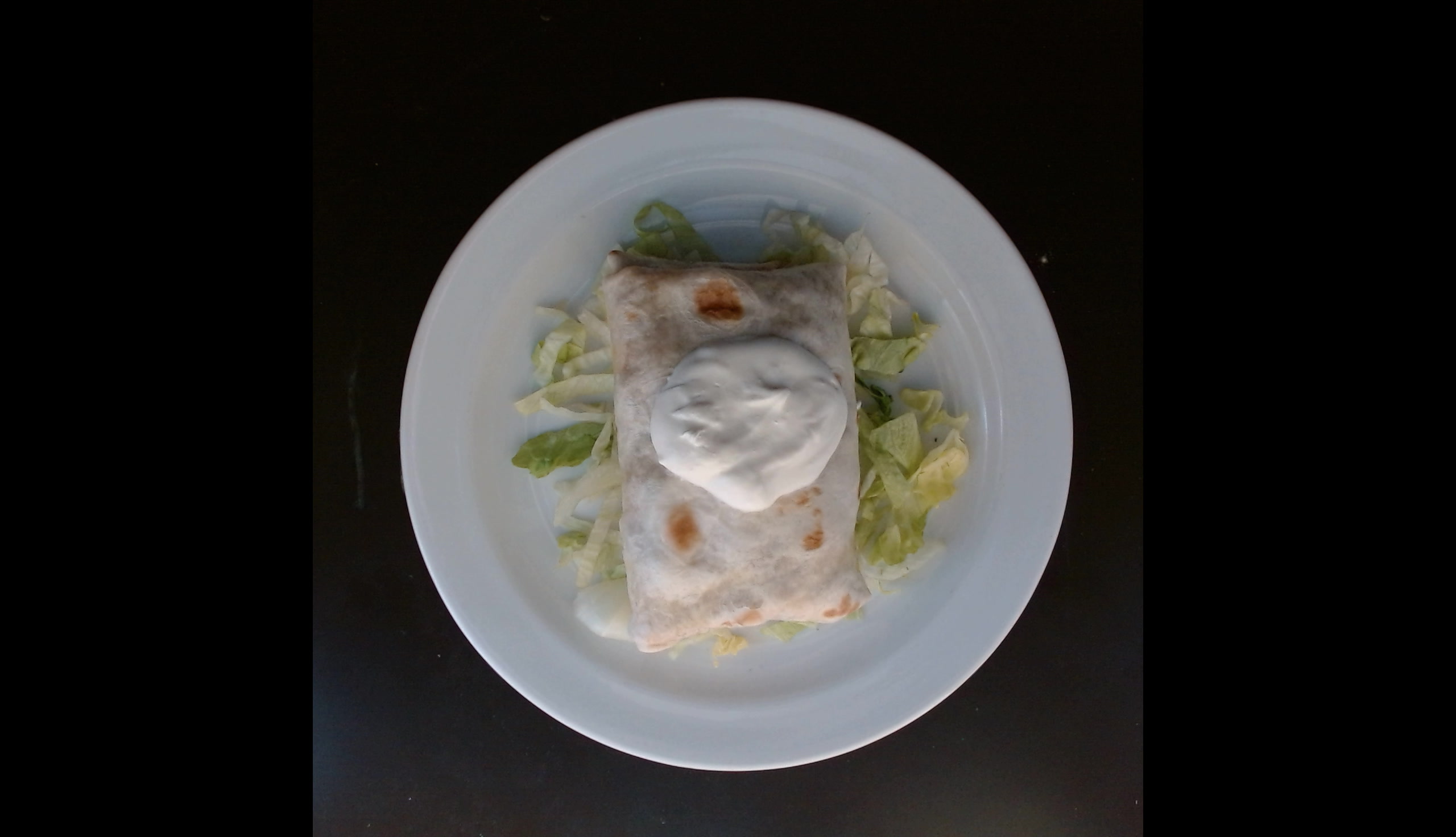 Tortilla s kuřecím masem na ledovém salátu se zakysanou smetanou