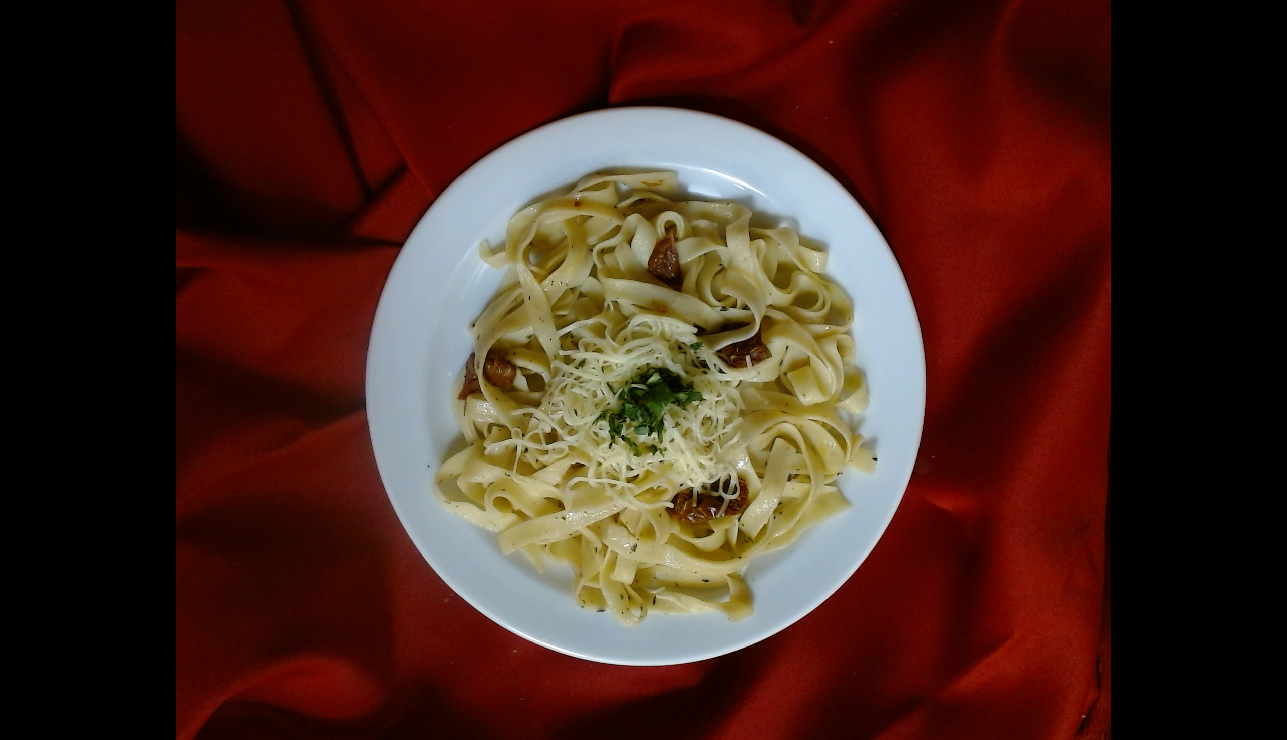 Tagliatelle se sušenými rajčaty a bazalkovým pestem