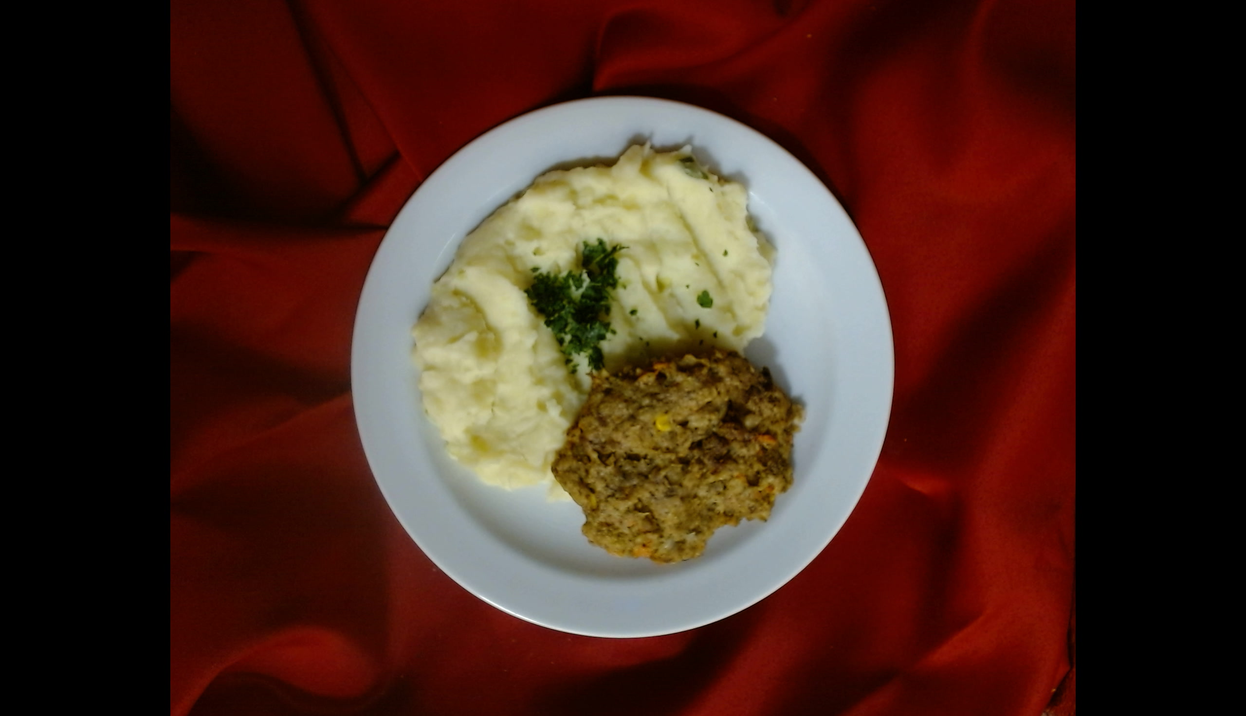 Pečený karbanátek se zeleninou, šťouchaný brambor