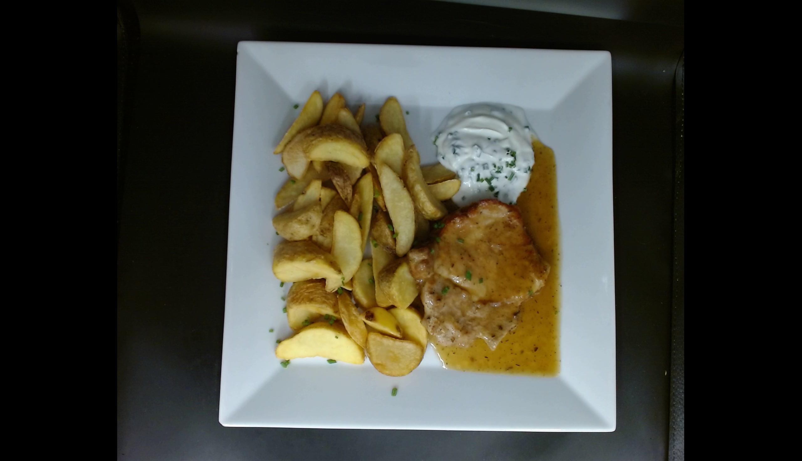 Vepřová kotleta na grilu, dip, americké brambory