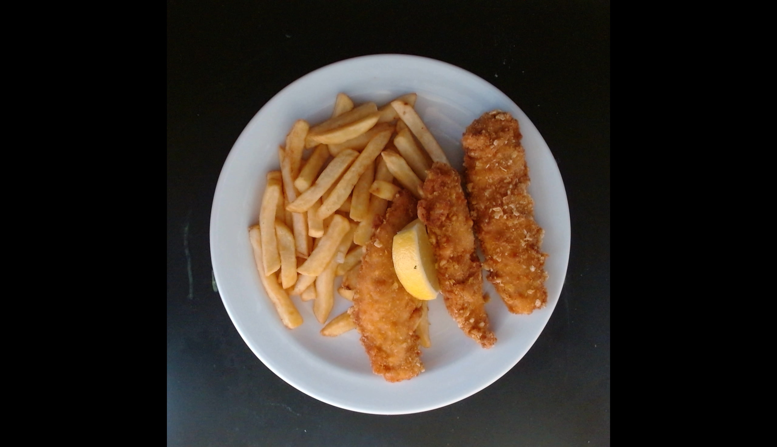 Kuřecí stripsy,citrón, hranolky