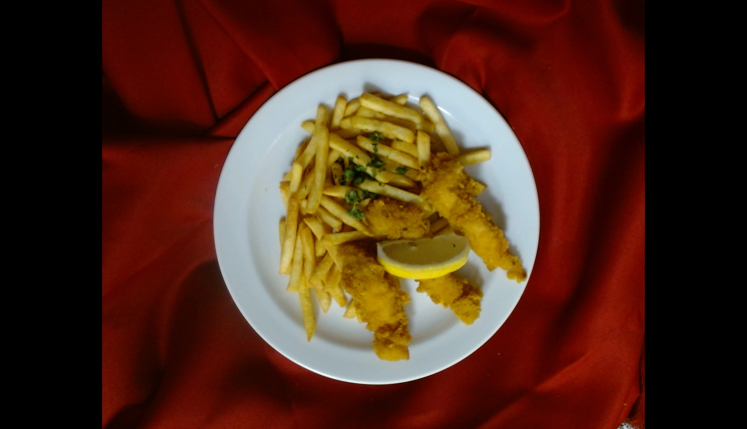 Kuřecí stripsy,citrón, hranolky