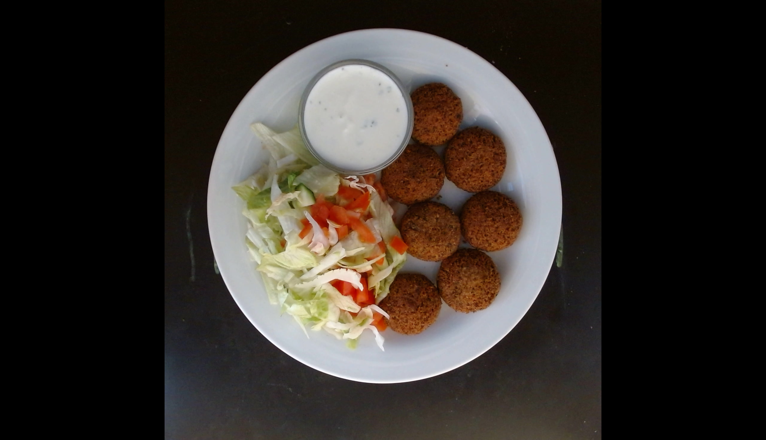 Falafel s s míchaným salátem, veganská tatarská omáčka