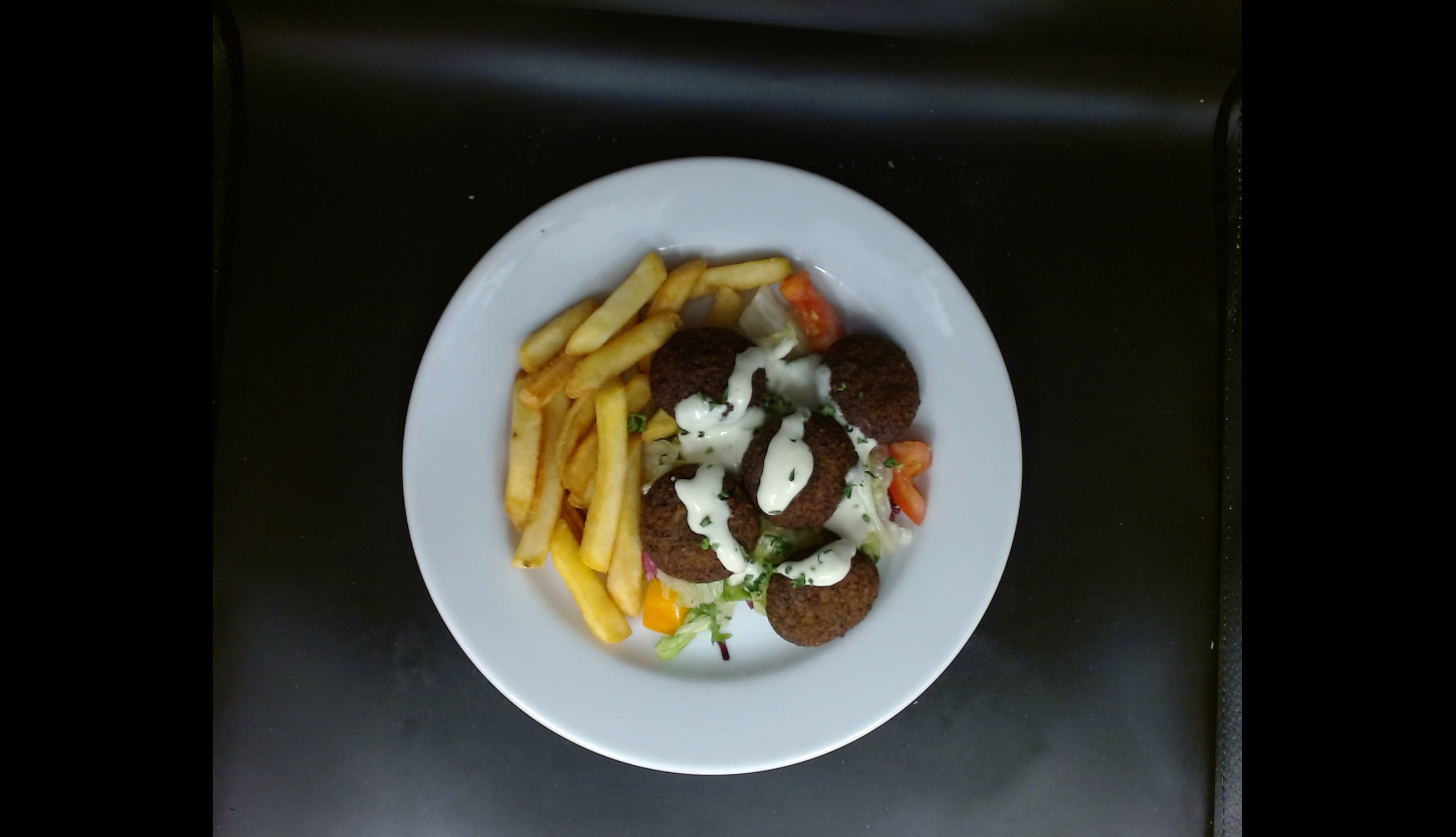 Falafel s s míchaným salátem,1/2 hranolky, veganská tatarská omáčka