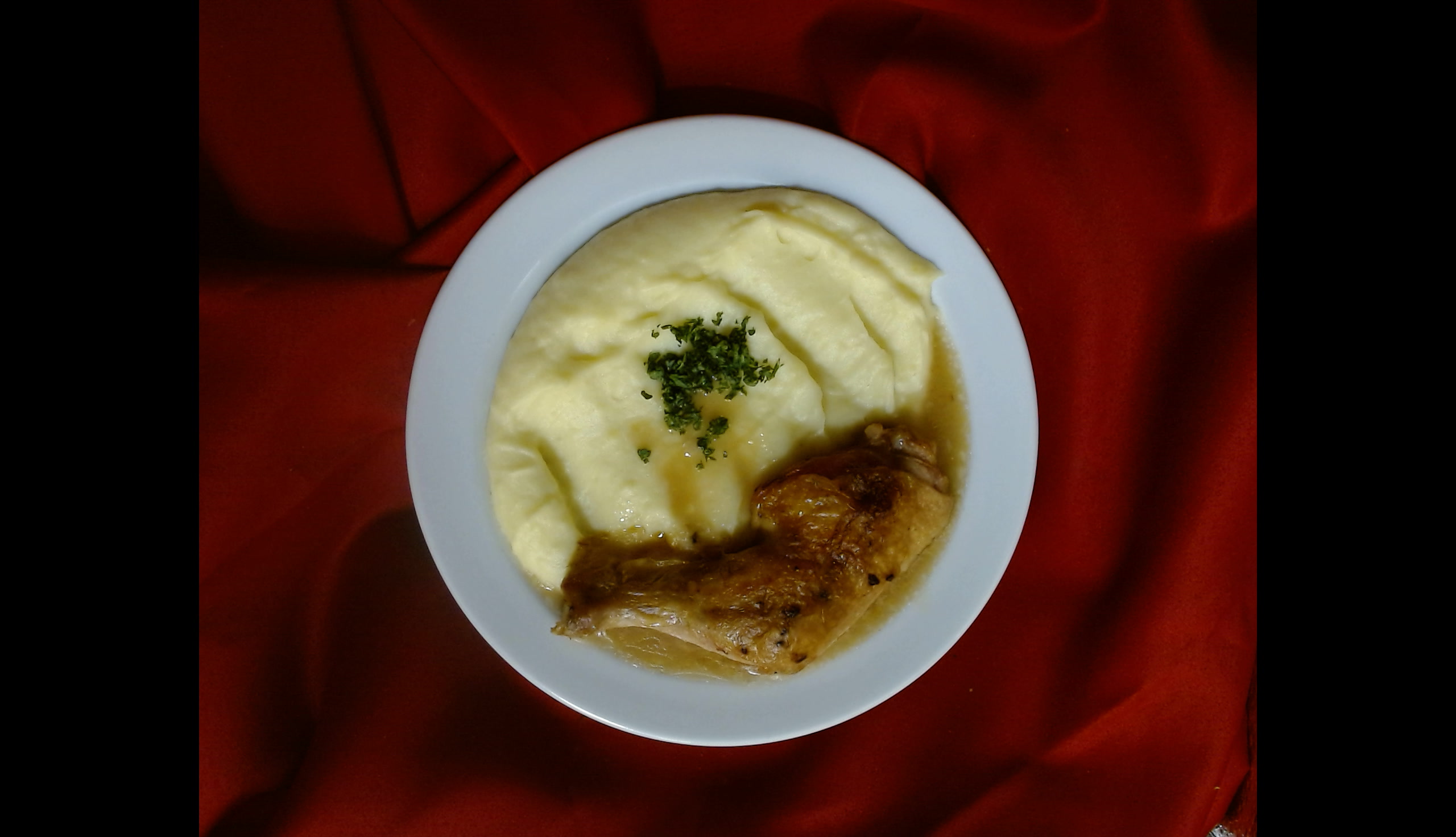 Kuřecí stehno na česneku, bramborová kaše