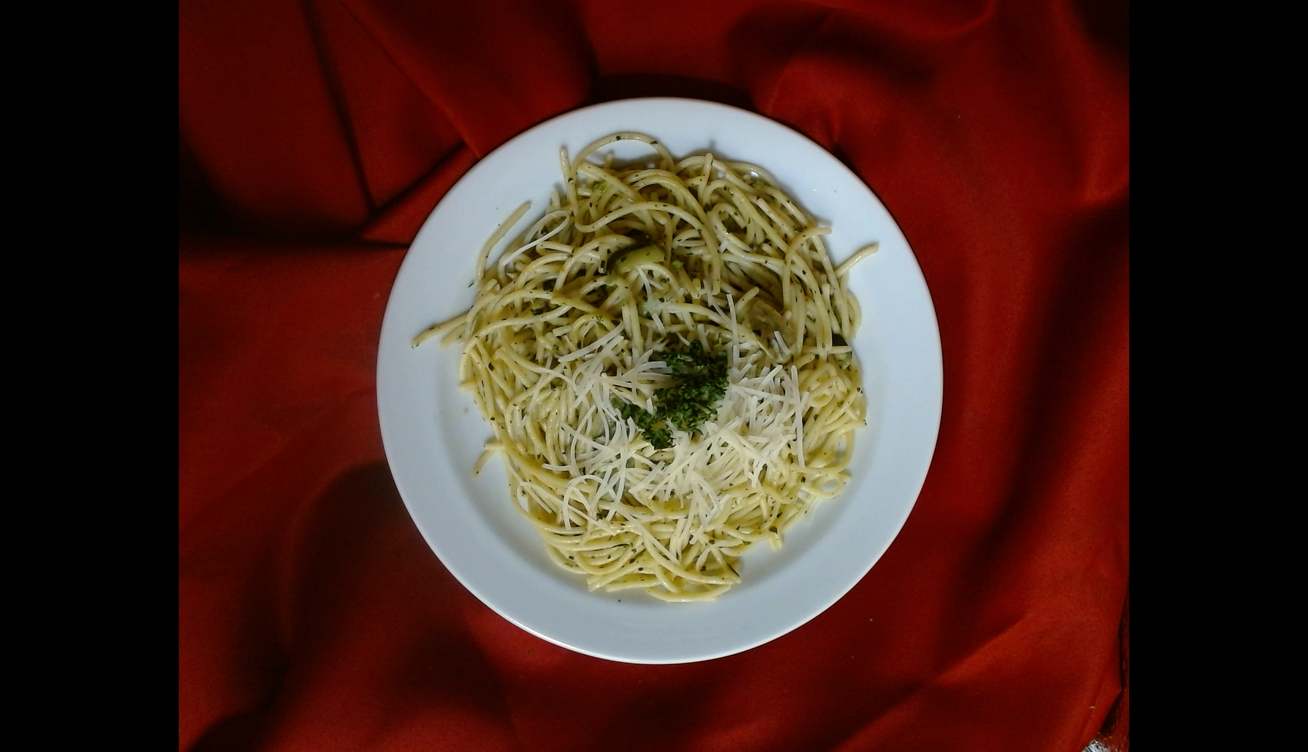 Špagety s bazalkovým pestem, cuketou a sýrem