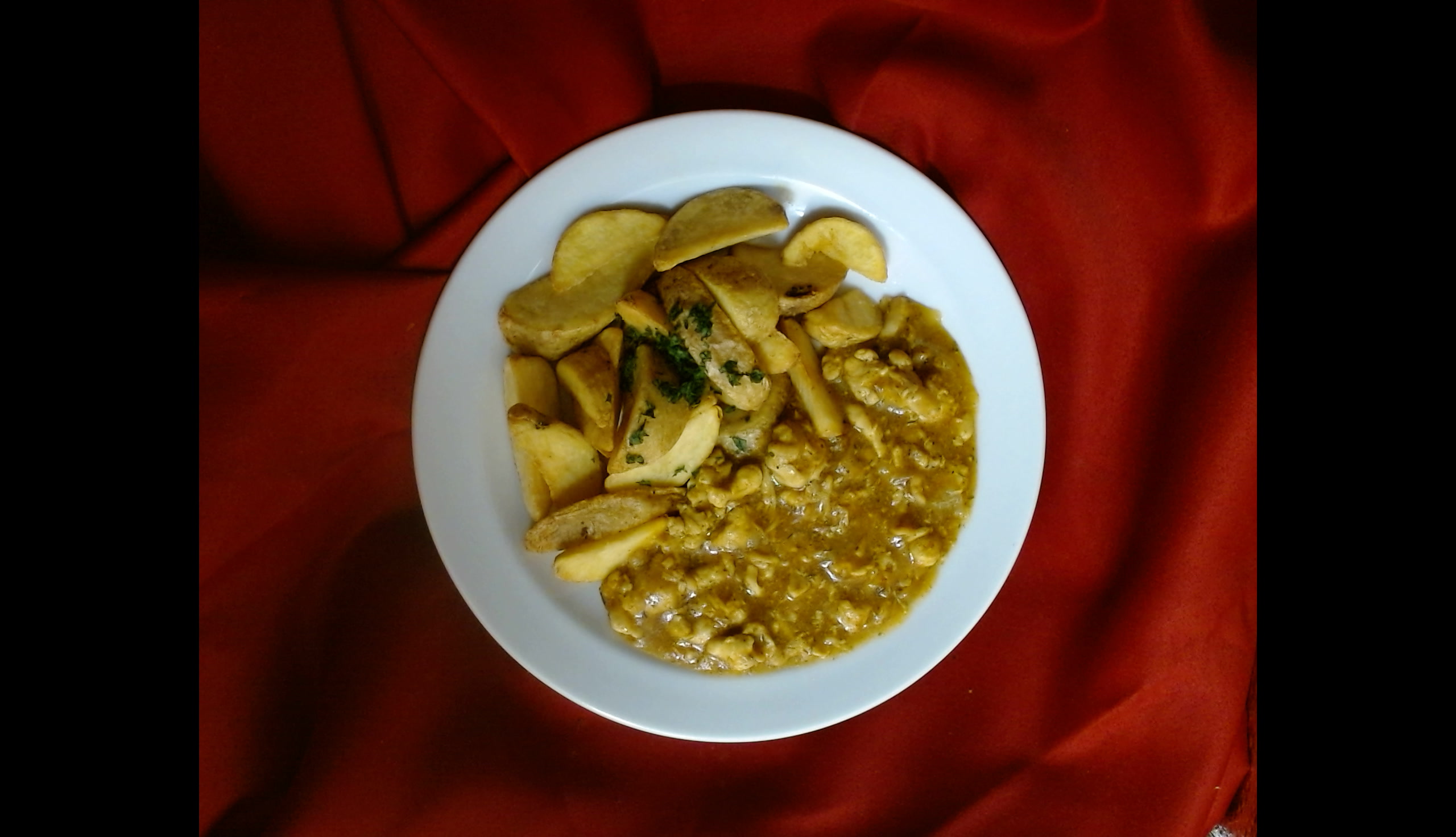 Kuřecí nudličky ala gyros stehenní maso, americké brambory