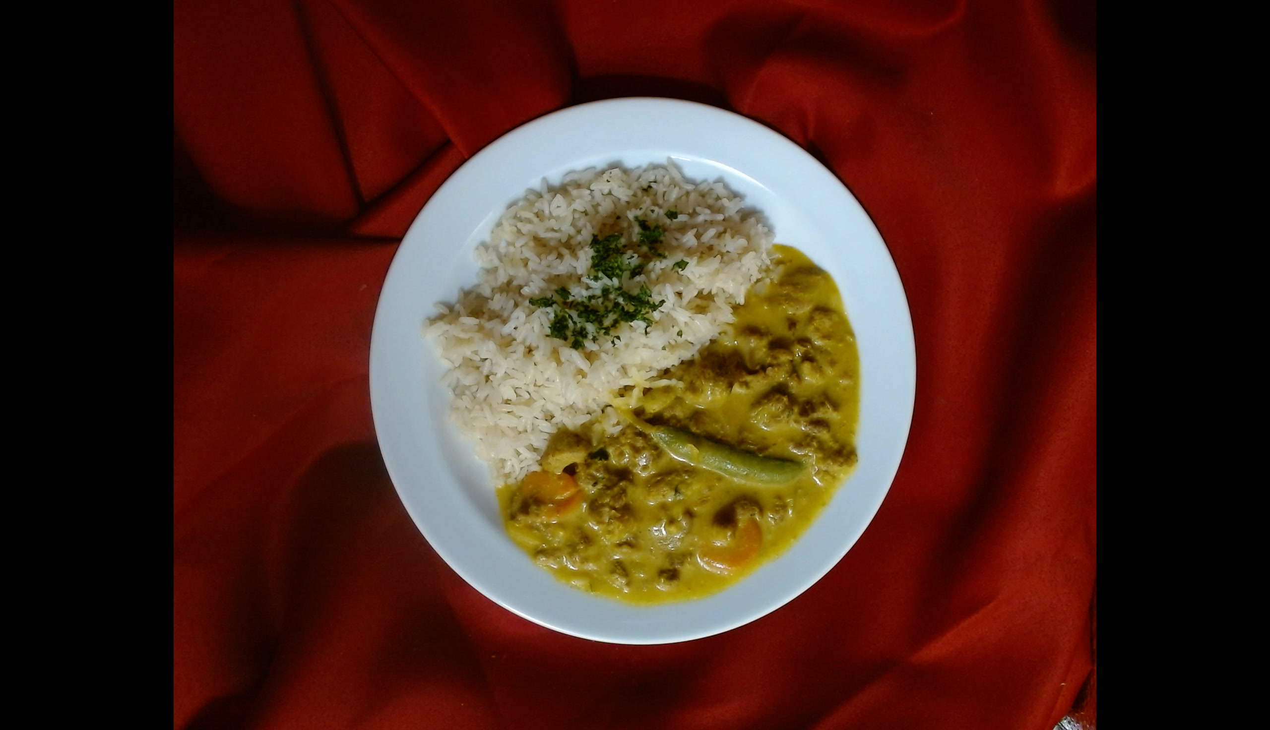 Krůtí nudličky na kari s kokosovým mlékem, dušená rýže