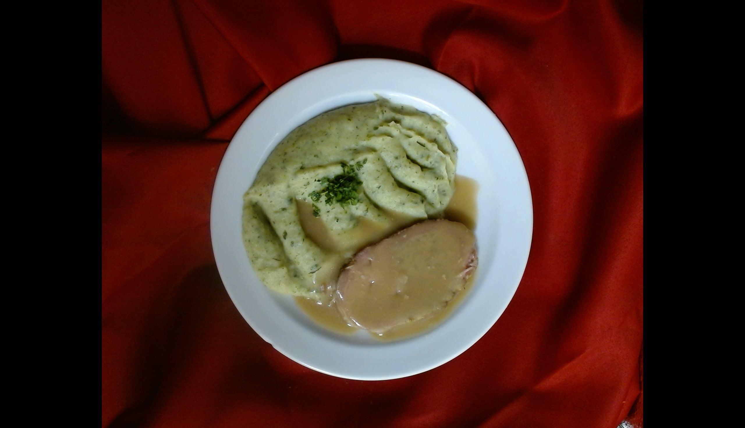 Krůtí roláda, bramborová kaše se špenátem