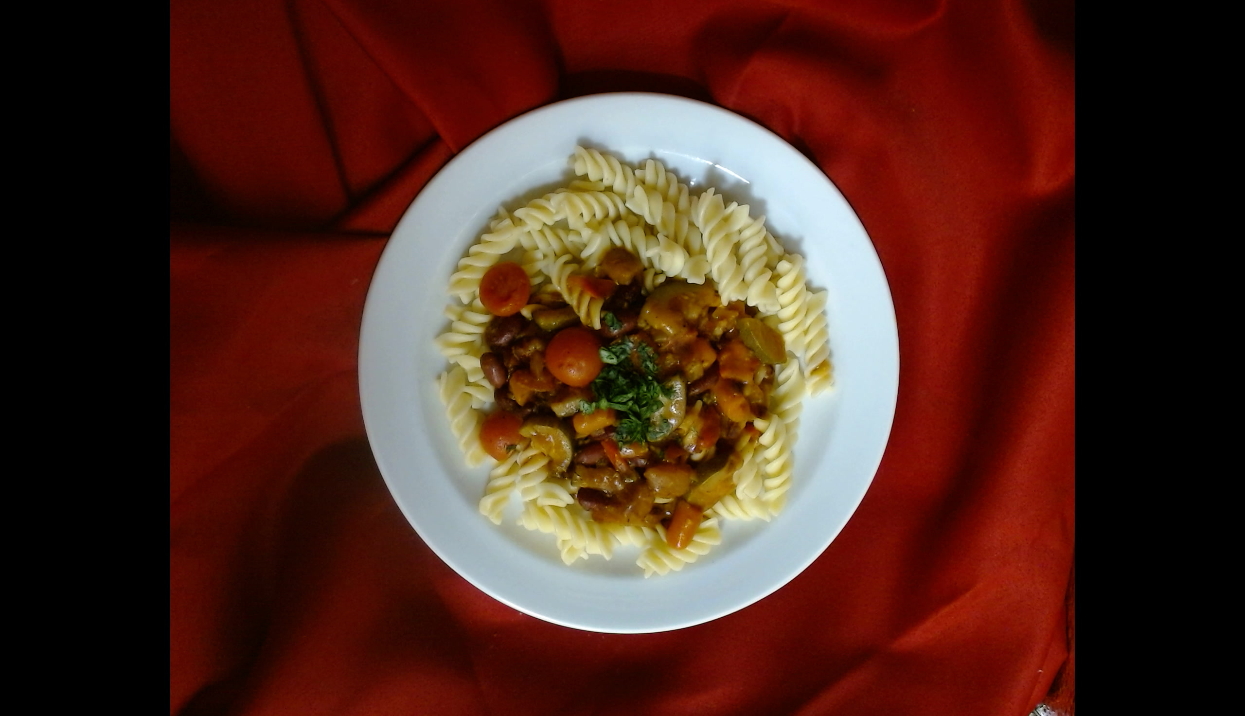 Fussilli s restovanou zeleninou a fazolemi