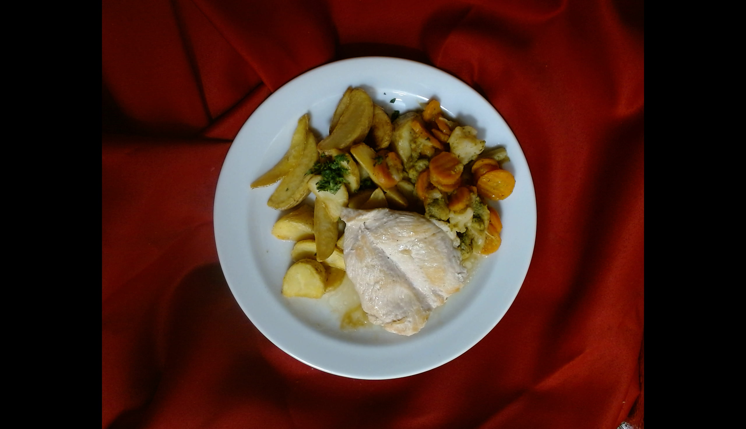 Kuřecí steak, bretaňská zelenina na másle, americké brambory