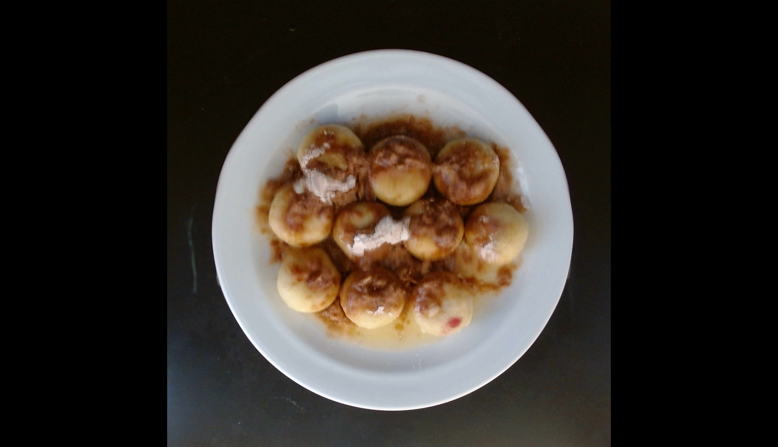 Malinové knedlíky z bramborového těsta se skoříicí a cukrem