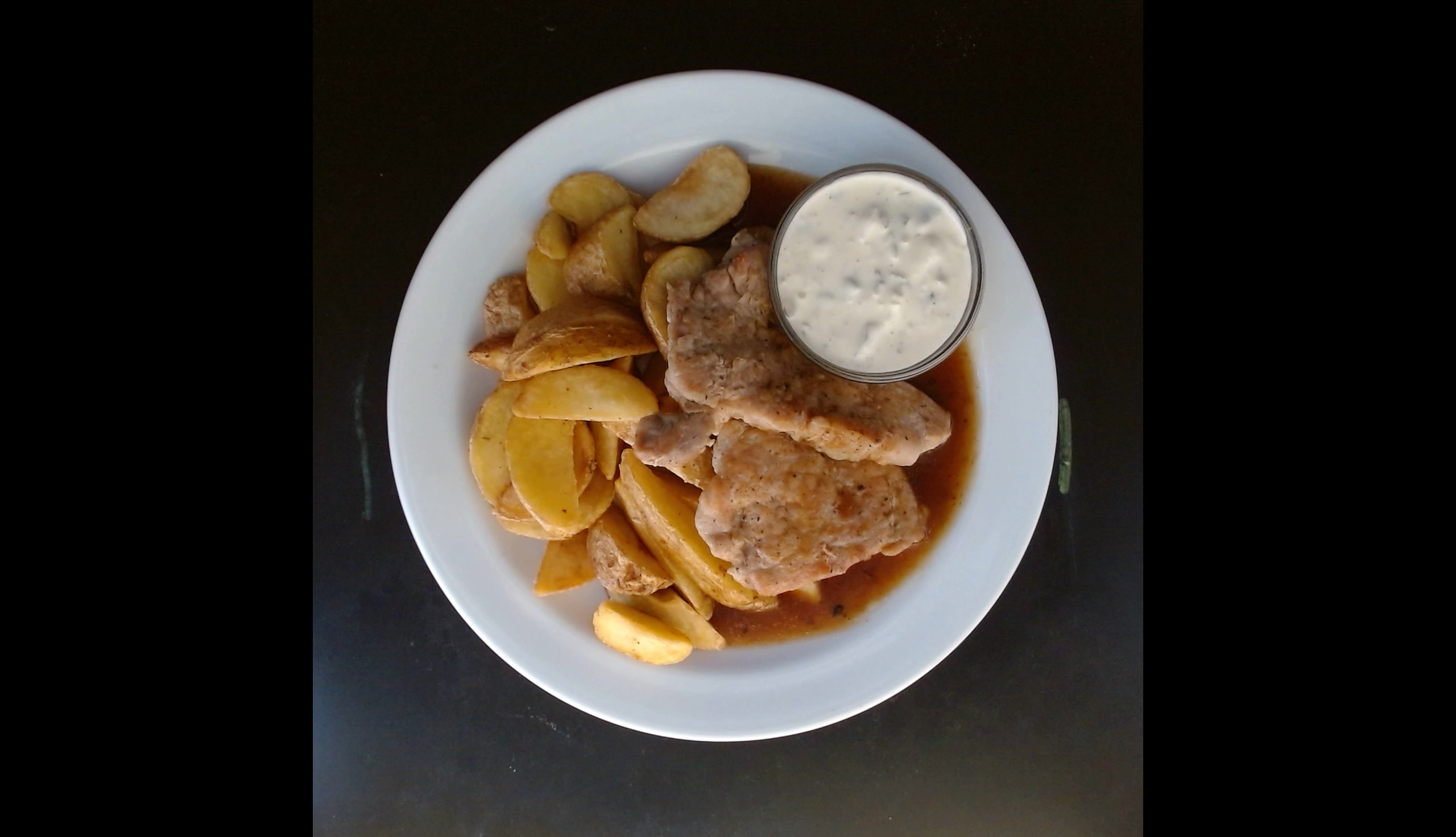 Vepřové medailonky, hranolky, tatarská omáčka