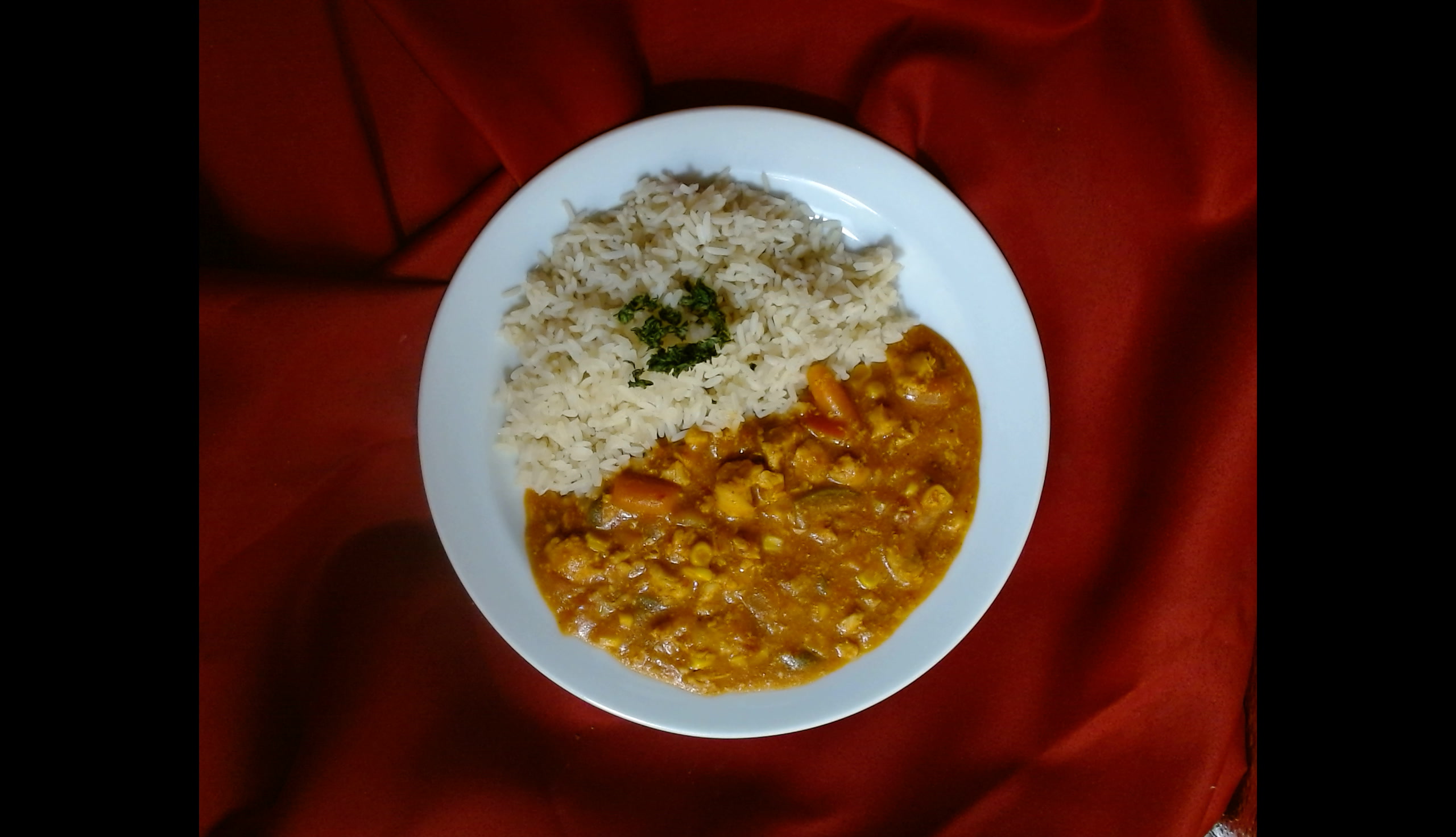 Kuřecí maso v omáčce s ajvarem, dušená rýže