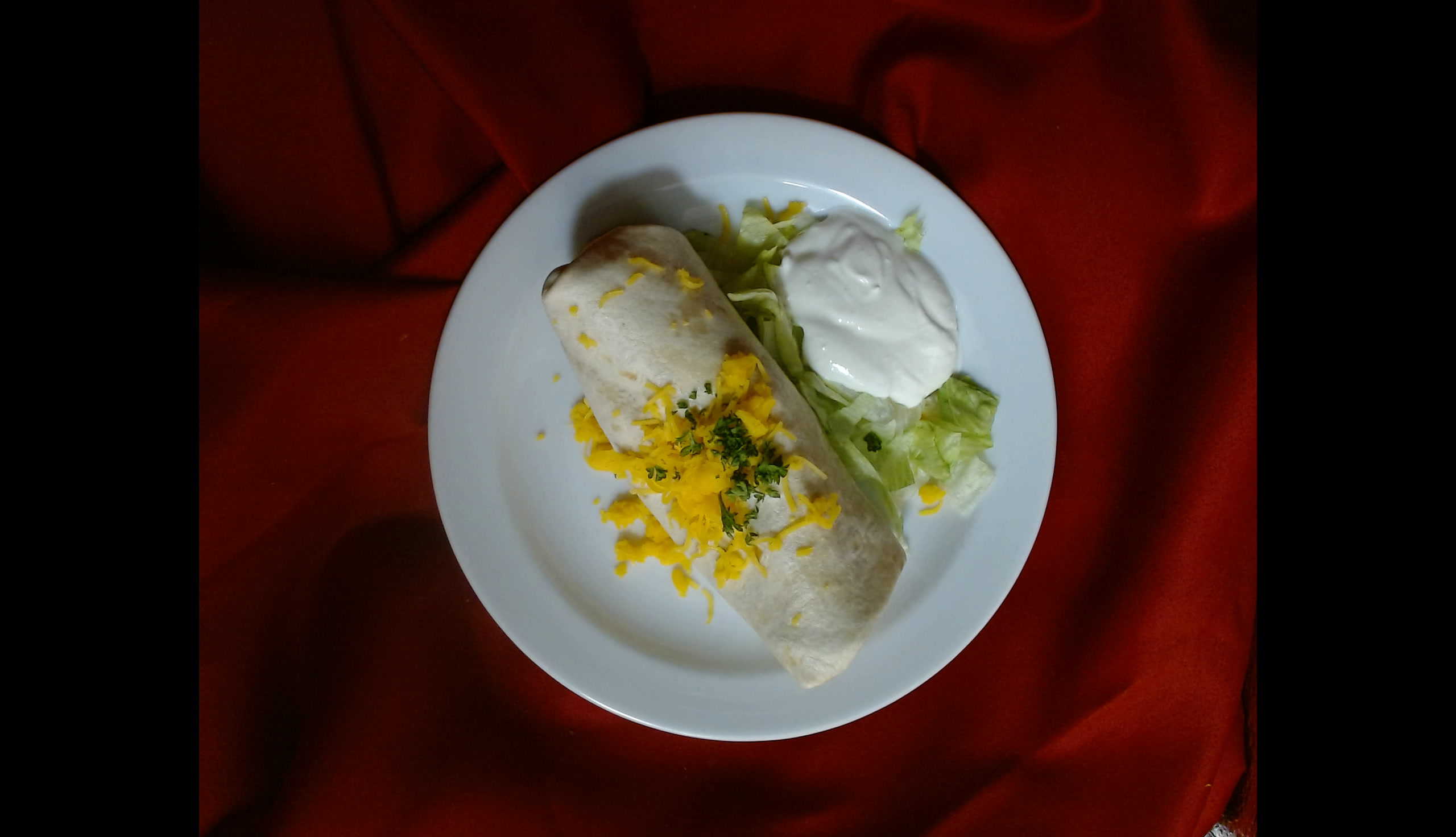 Tortilla s kuřecím masem na ledovém salátu se zakysanou smetanou