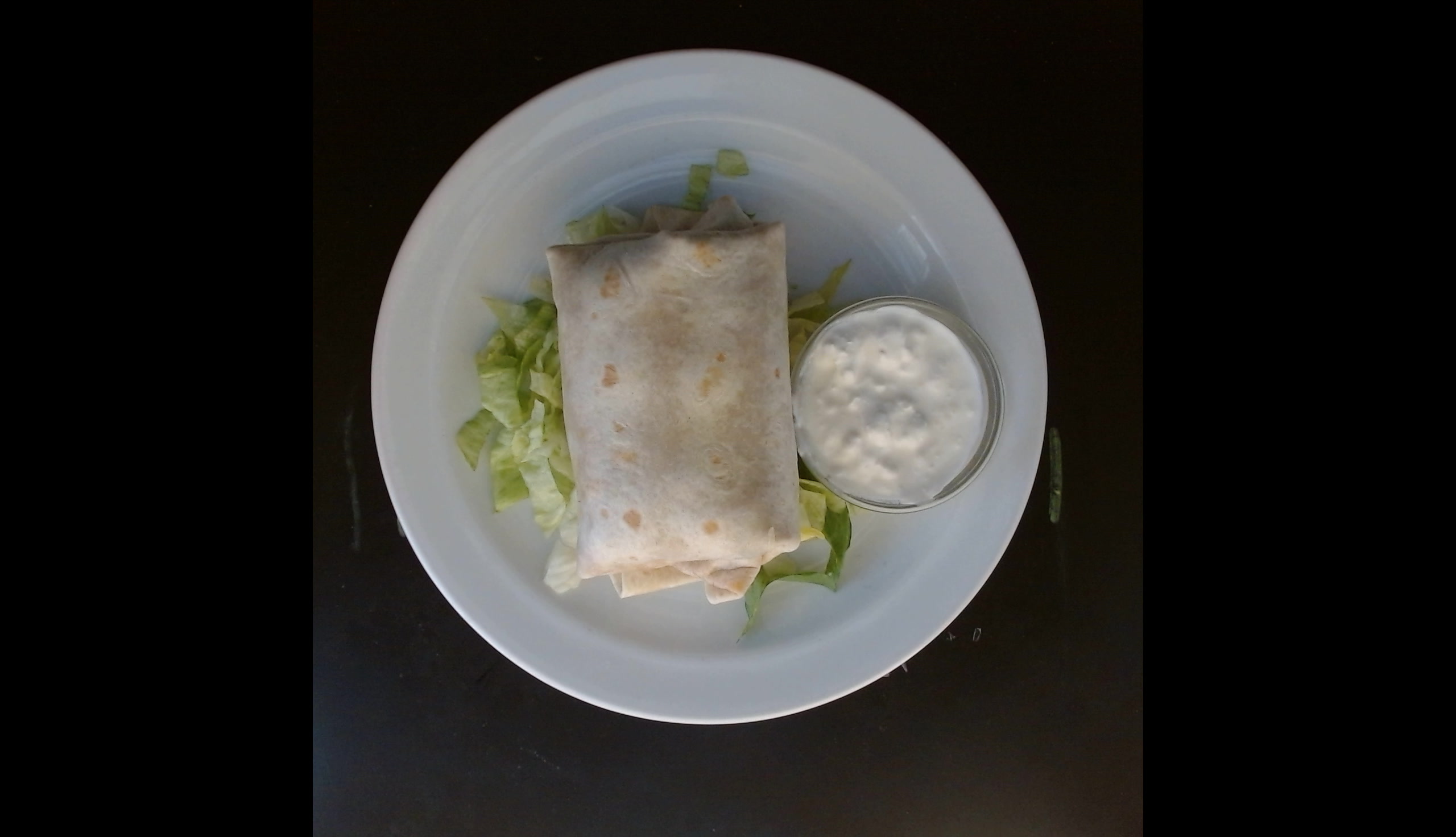 Tortilla s kuřecím masem na ledovém salátu se zakysanou smetanou