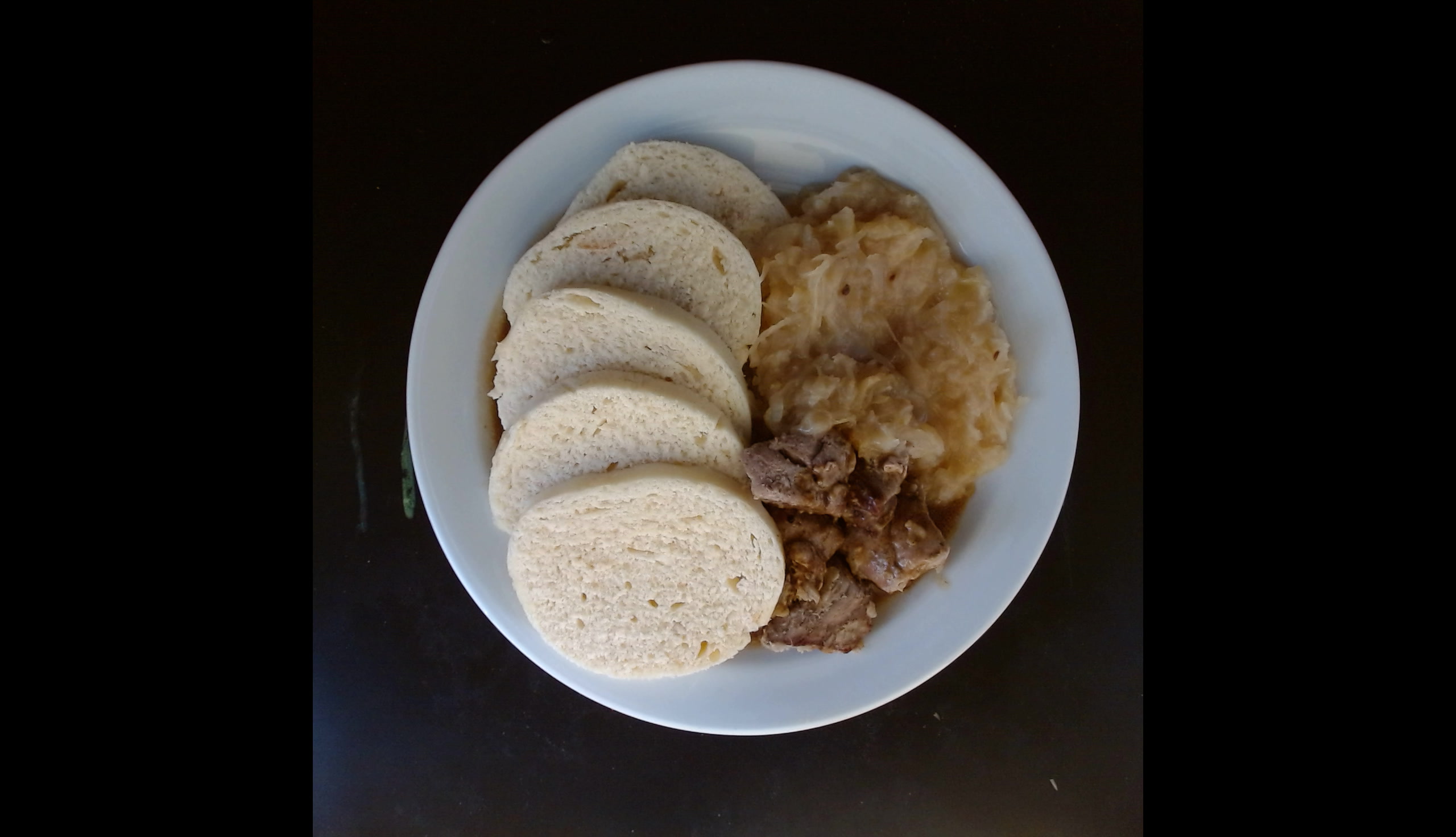 Vepřové výpečky, houskové knedlíky, dušené zelí