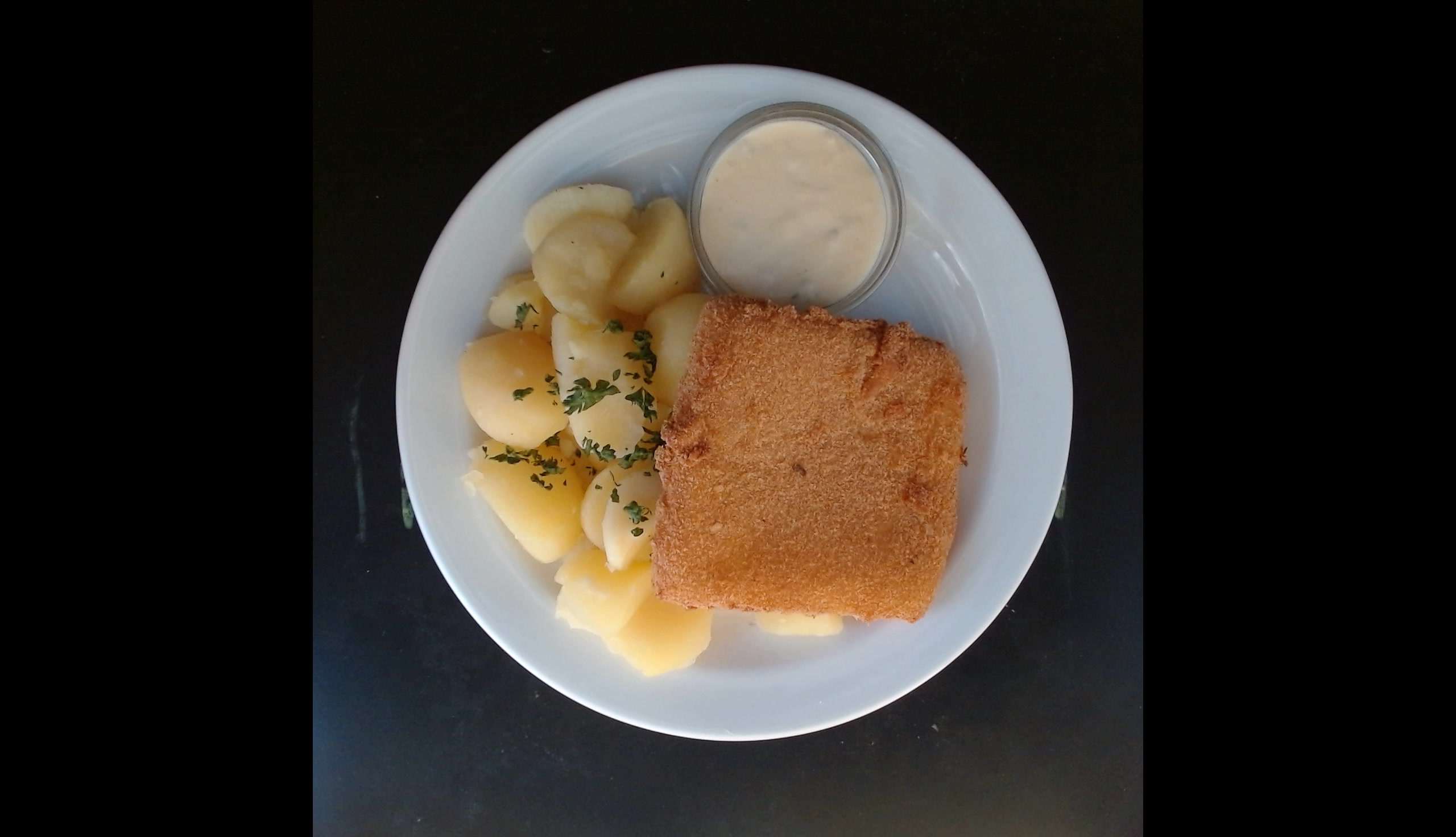 Smažený sýr, vařený brambor, tatarská omáčka